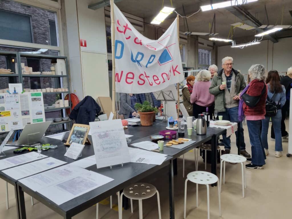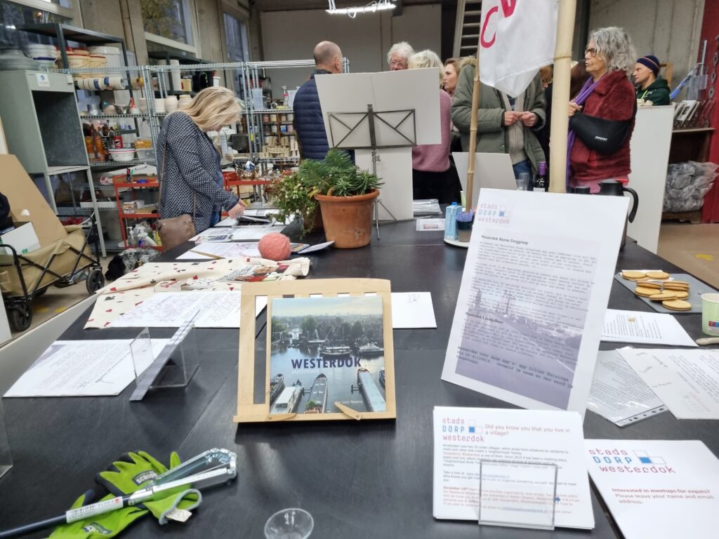 In het atelier van Ceramic op Westerdok 318 presenteerde het Stadsdorp zich met de vele activiteiten. Door de prachtige presentaties werden de activiteiten op het Westerdokseiland nog zichtbaarder. We kunnen samen eten, zingen, de buurt schoonhouden, creatief bezig zijn, yoga, lezen, filosoferen, in de tuinen werken, koffie drinken, borrelen, Frans leren spreken, kaarten. Er zijn twee app groepen. Een voor hulp en een voor lenen. Nieuwsgierig geworden? Kijk op www.stadsdorpwesterdok.nl/activiteiten