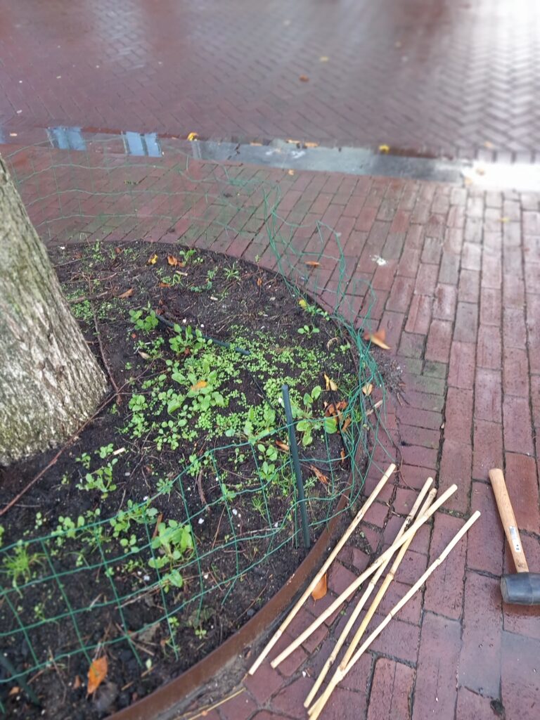 Wie wil meehelpen, het is net zo veel werk als je er zelf aan wilt besteden, kan zich aanmelden door een e-mail te sturen naar boomtuintjes@stadsdorpwesterdok.nl.