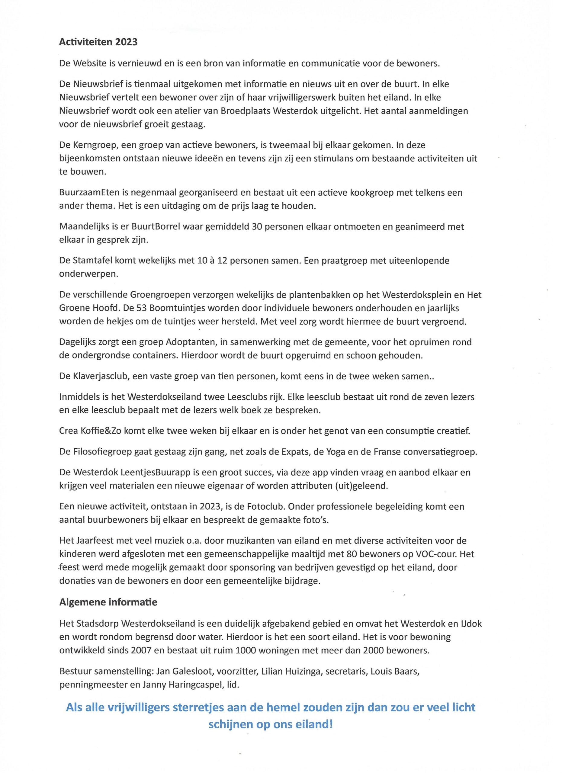 door Jan Galesloot, voorzitter Stadsdorp Westerdok.