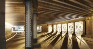 Te vinden onder het spoorviaduct bij de Korte Prinsengracht. ‘Filmset aan het IJ’ is ontwikkeld door Chris Hutter en Ineke Hilhorst. Zij willen met dit concept de tunnel verfraaien met tijdelijke kunstinstallaties. De set is dus klaar en kan ingevuld worden (zie voorbeelden). Kunstenaars, performers en amateurs kunnen een projectvoorstel indienen. Kijk op https://amsterdam.kunstwacht.nl/kunstwerken/bekijk/15627-filmset-aan-het-ij